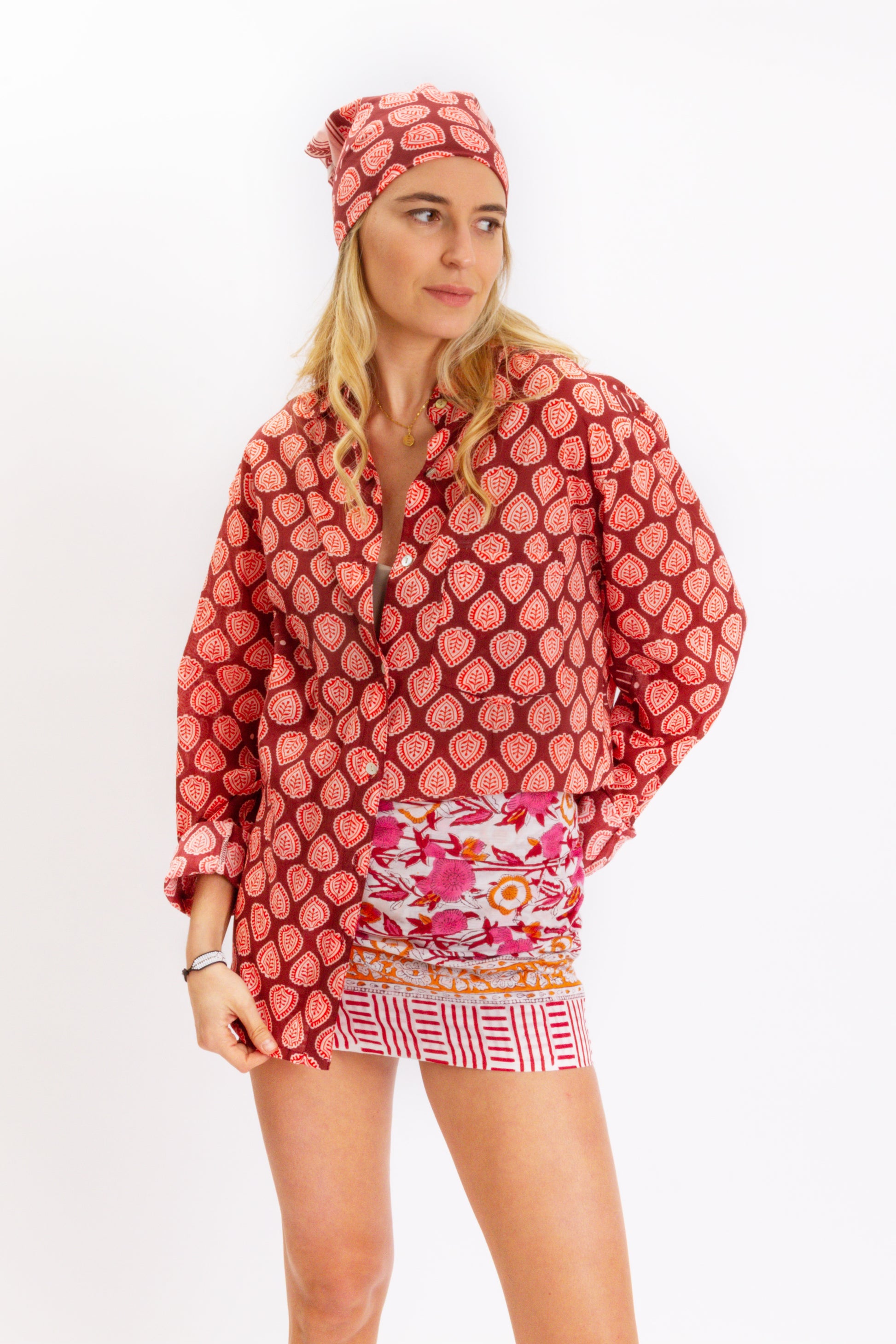 La modella indossa Camicia 109 e Pareo 8