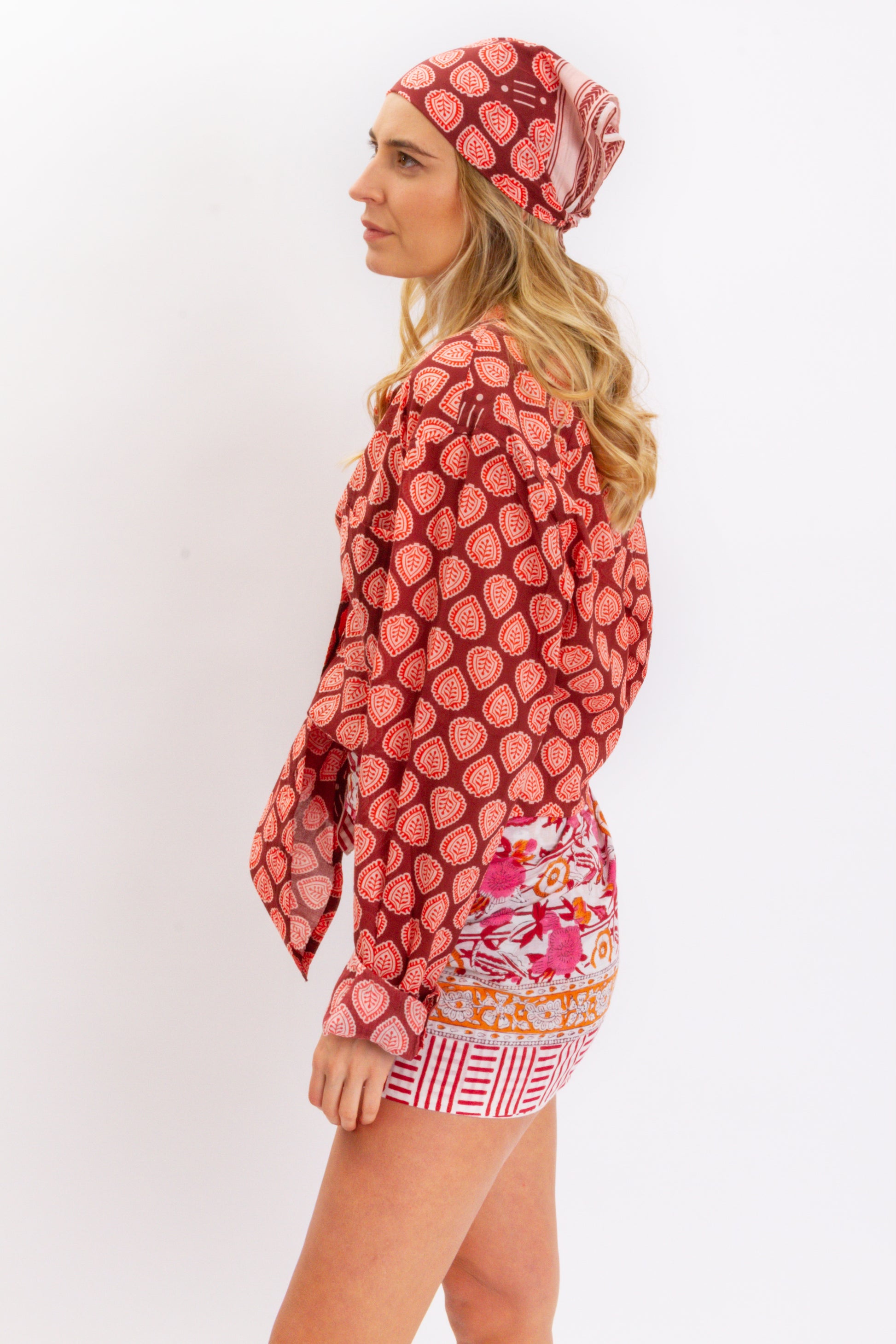 Bandana in 100% cotone leggero stampato a mano con l'antica tecnica Block Print.