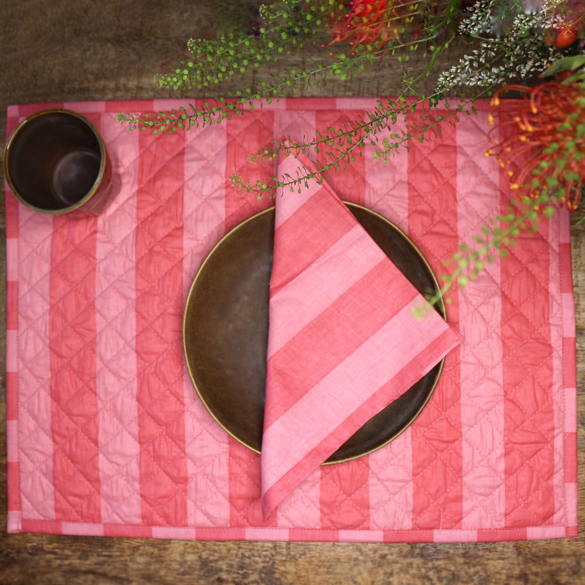 Set da tavola x2 comprende: due tovagliette trapuntate e due tovaglioli.